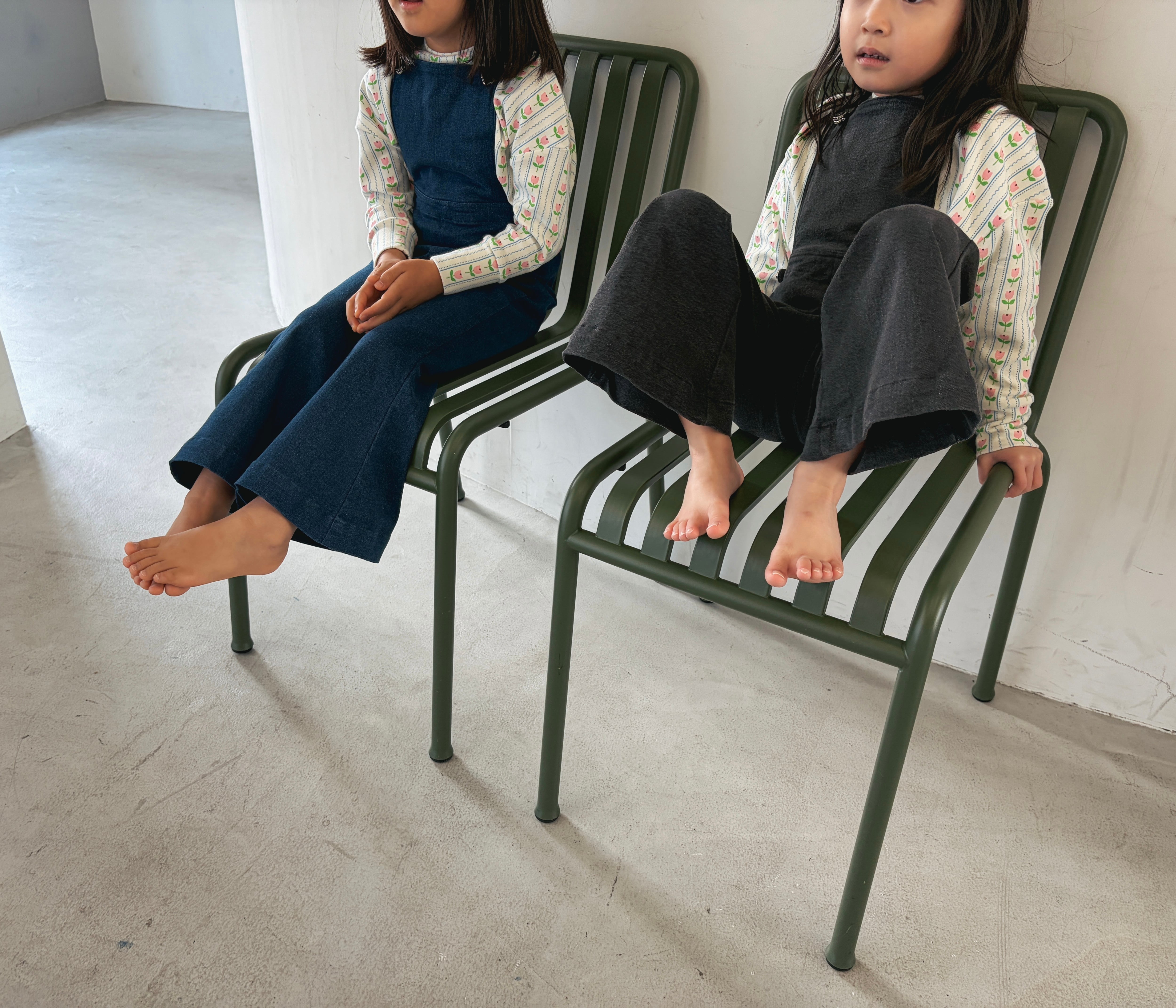 程よく広がるフレアシルエットが印象的なデニムサロペット。